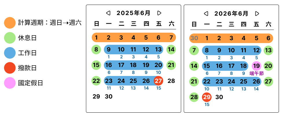 週日至週六的刷卡、超商代碼、超商取貨代收款、虛擬帳號代收款,結算後+10個工作日撥款